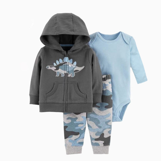 Set de 3 piezas Dinosaurios: Pantalón, Campera y Body de manga larga