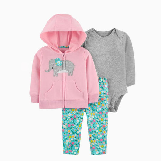 Set de 3 piezas "Elefantes": Pantalón, Campera y Body de manga larga
