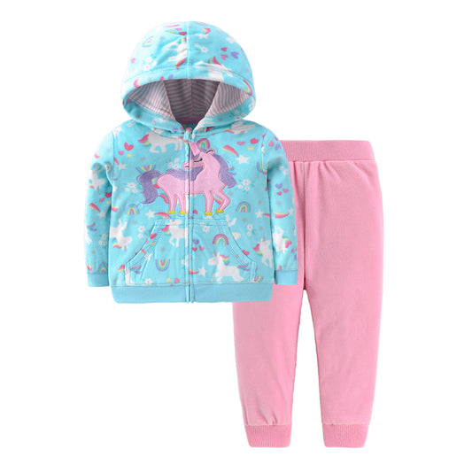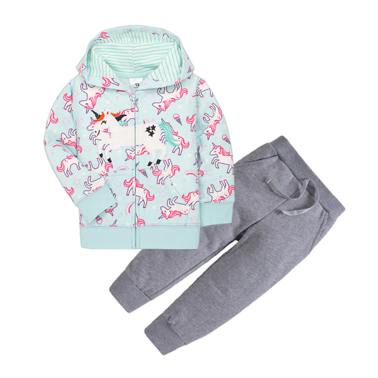 Set de 2 piezas "Unicornios": Pantalón y Campera micropolar