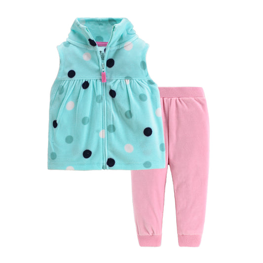 Set de 2 piezas micropolar Lunares: Pantalón y Chaleco