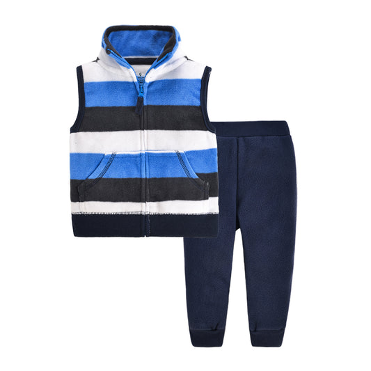 Set de 2 piezas micropolar "Rayado": Pantalón y Chaleco Azul