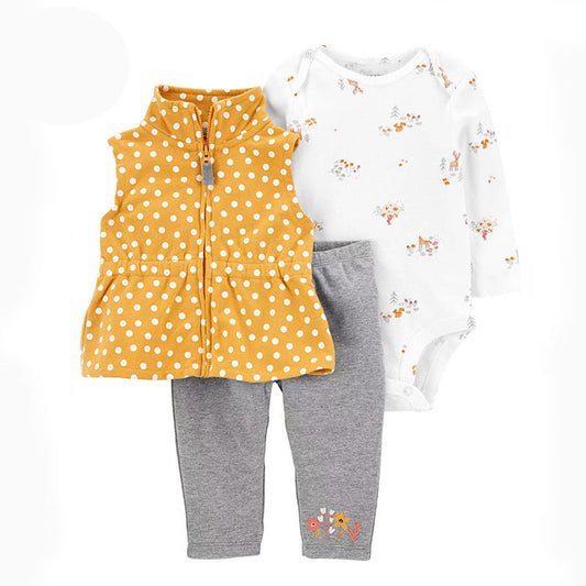 Set de 3 piezas: Pantalón, Chaleco Amarillo y Body de manga larga