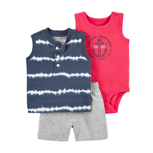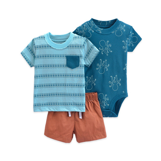 Set 3 piezas: Short, remera y body de manga corta "Dinosaurio"
